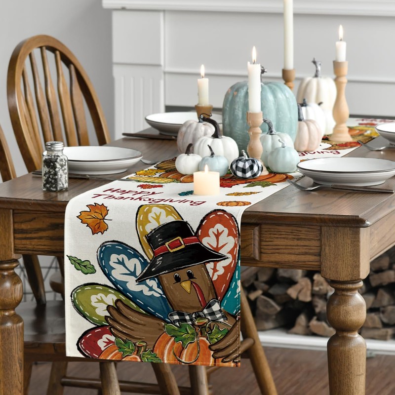Artoid Mode Pumpkins Turkey Thanksgiving Table Runner, Harvest Fall Autumn Kitchen Dining Table Decoration for Home Party Decor 13x72 Inch
