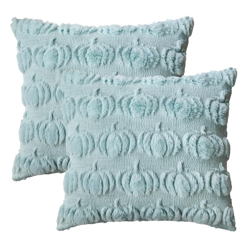 Artoid Mode Soft Artificial Fur Blue Pumpkins Autumn Cushion Covers Set of 2 45 x 45 cm Plush Velvet Sofa Cushion Decorative Cushion Cover Bedroom Decoration