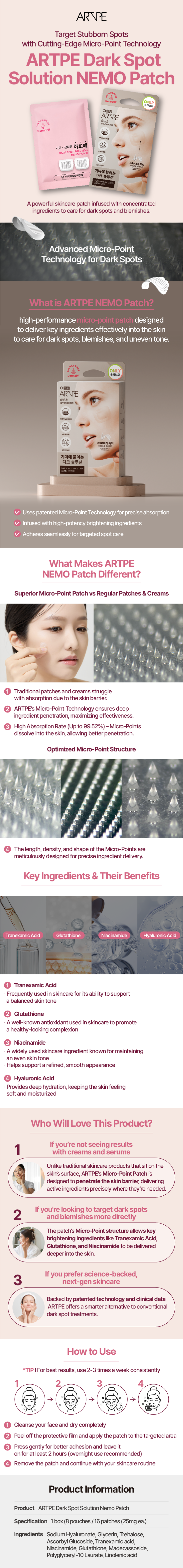 - Product/Model Name: ARTPE Dark Spot Solution Nemo Patch 8P