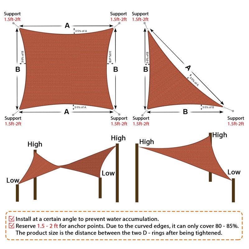 - Versatile Use & Easy Fit:Whether it's a cozy patio, a lively lawn or garden, a relaxing pool or a peaceful pondside, a big deck , a fun sandbox, or even parks, carports, pergolas, this shade sail can fit right in and create a nice shaded spot for you.