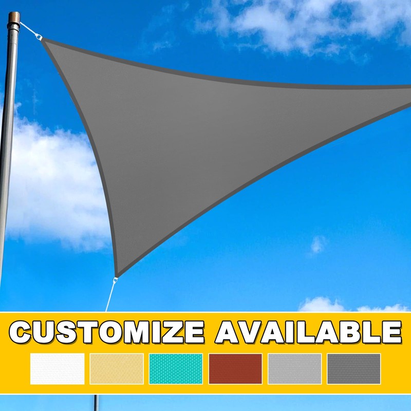 Artpuch Waterproof Sun Shade Sail, 16'x16'x16' Light Grey Triangular, UV Resistant Rain Canopy, Curved Edges Shade Cloth for Outdoor Patio, Deck, Yard