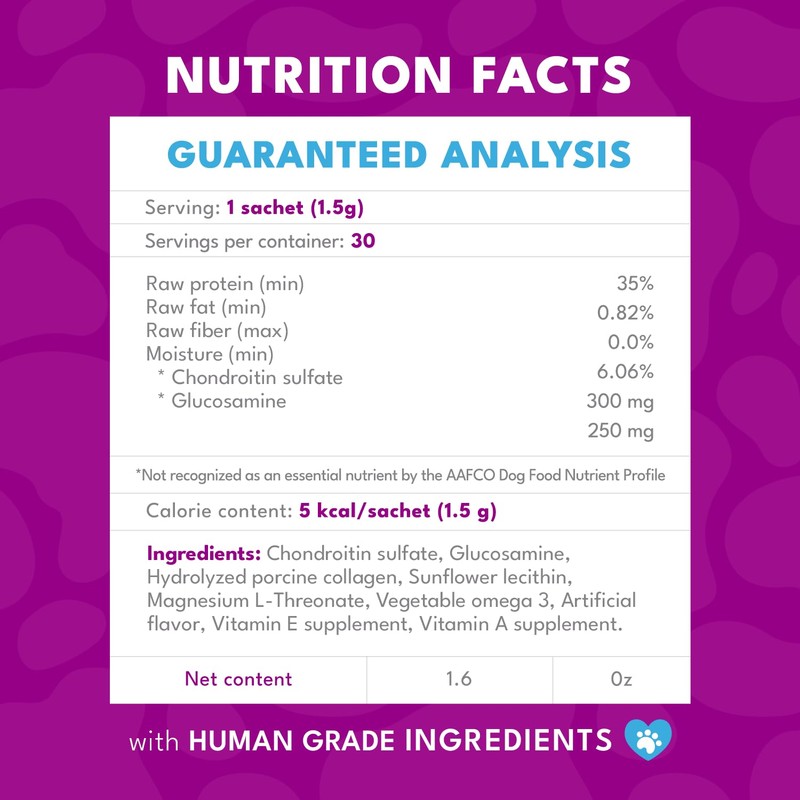 - Convenient Dosage: Sachets tailored for different dog sizes ensure easy administration, suitable for mini breeds with 1/2 sachet.