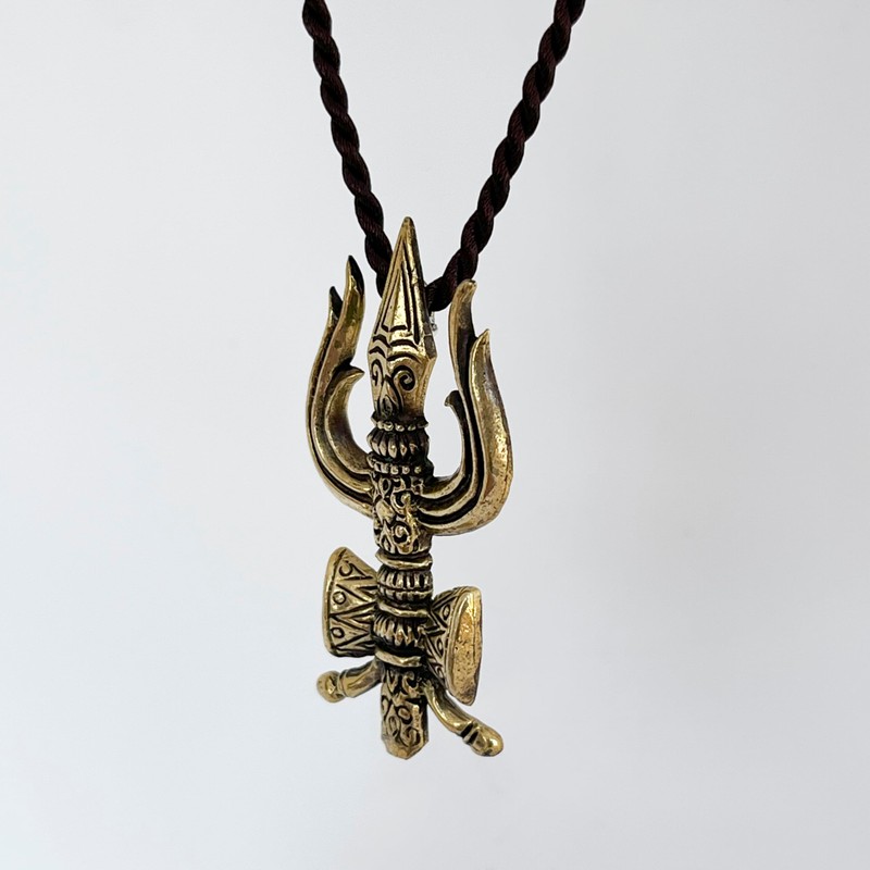 Artschatz Trishula (त्रिशूल) Pendant - Trident of Shiva, Brass, No Gemstone