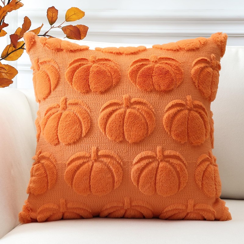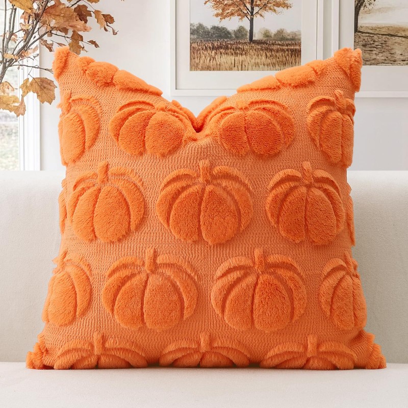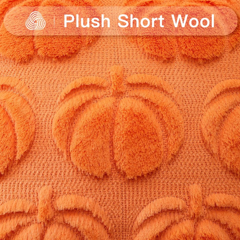 - DESIGN - Hidden zipper. Rich texture wool fabric front, velvet back. Autumn Pumpkin Pattern.
