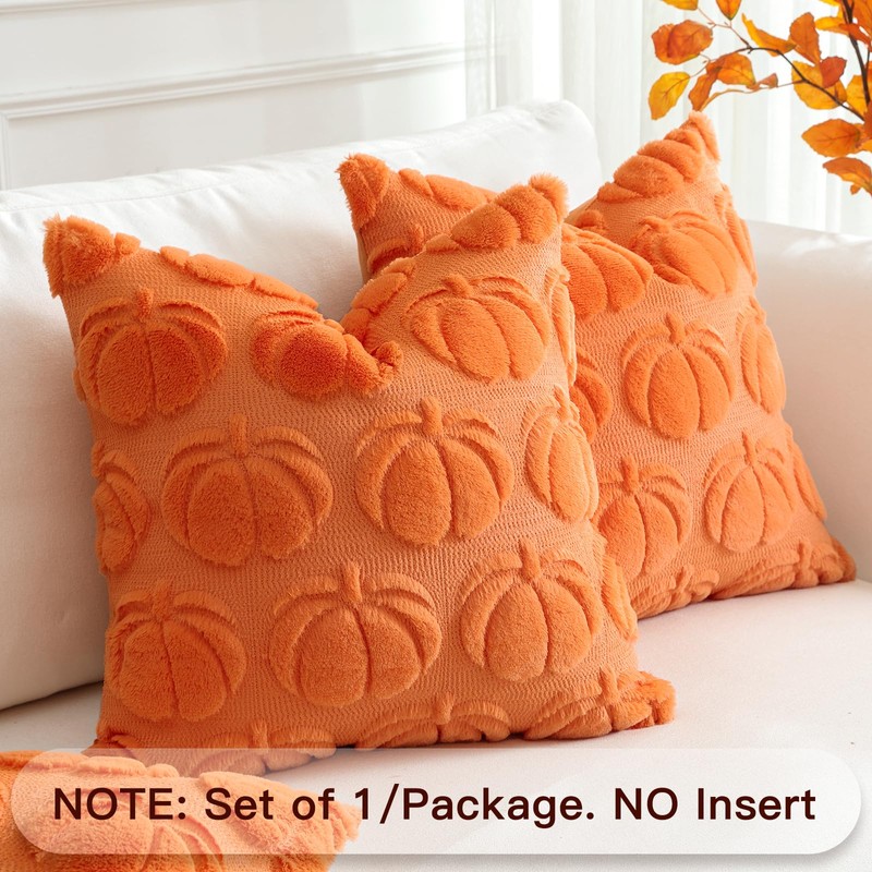 Artscope Fall Cushion Cover Set of 1 Autumn Pumpkin Throw Pillow Covers for Sofa Couch Bed Living Room Soft Plush Short Wool Velvet Farmhouse Pillowcase for Halloween 45x45cm Orange