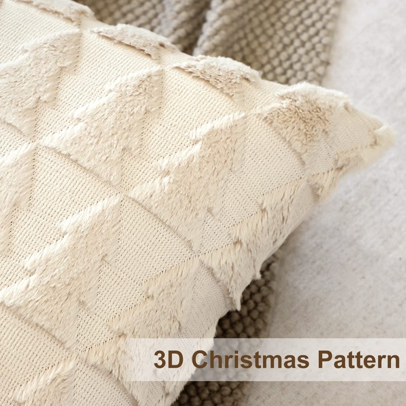 Artscope Set of 2 Soft Plush Short Wool Velvet Decorative Cushion Covers Square Luxury Style Throw Pillow Covers Pillow Shell for Sofa Bedroom Christmas Tree Cream Beige, 45x45cm