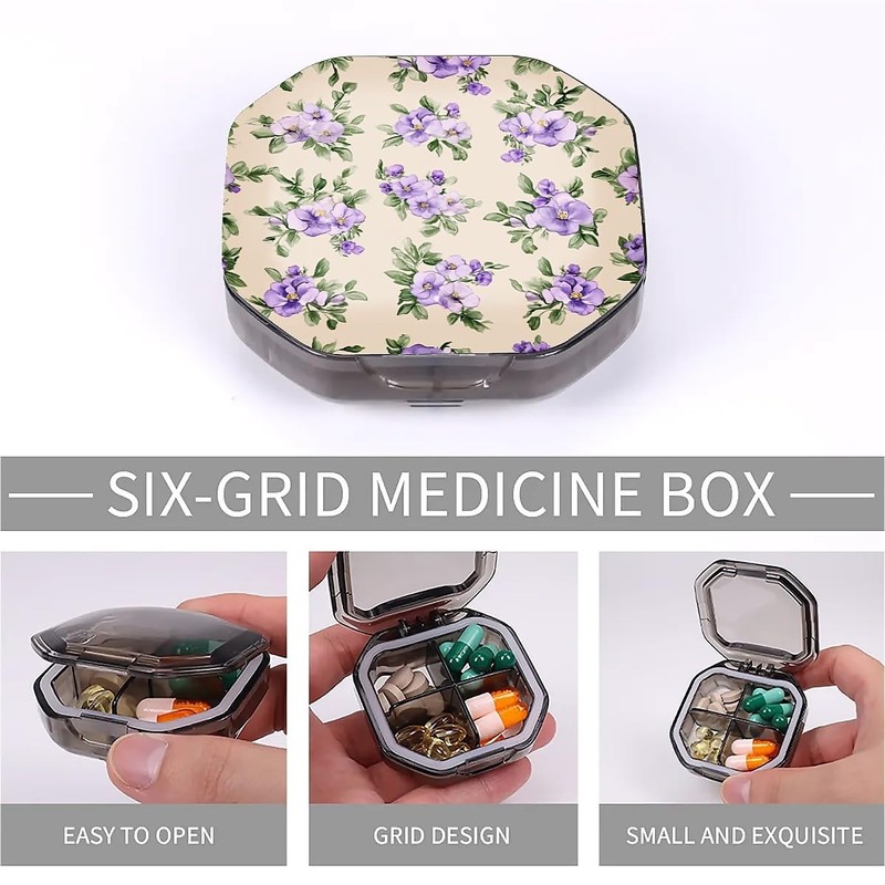 artslion Small Pill Organiser 4 Times A Day Travel Medicine Organizer with Purple Flowers Patterns C Daily Pill Containers Compact Stylish Pill Case