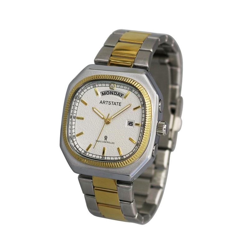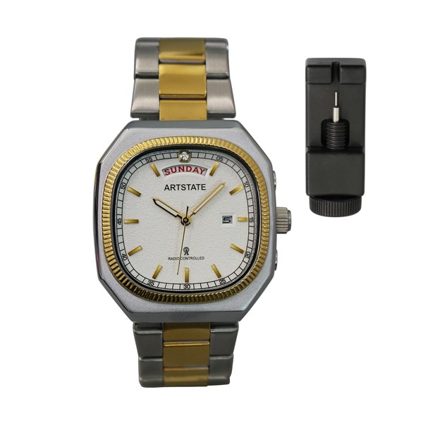 [ARTSTATE AS3265] 腕時計 メンズ 電波時計, 日付と曜日の表示,長いバッテリー寿命 (シルバー&ゴールド)
