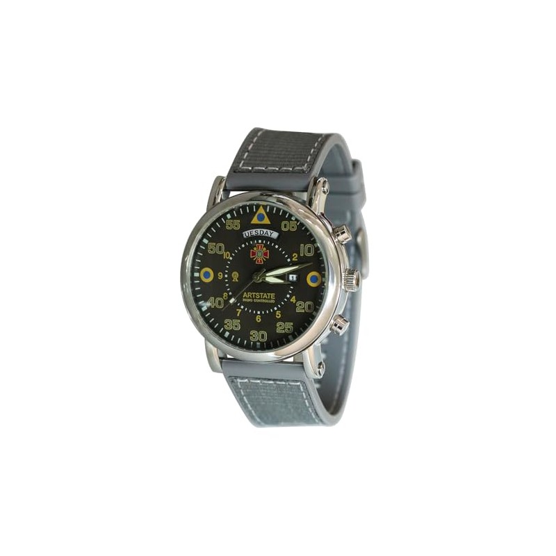 [ARTSTATE AS3293]カーキ アビエーション メンズ電波腕時計,デイデイト機能搭載,売上はUNICEFに全額寄付 TPUストラップ,長いバッテリー寿命