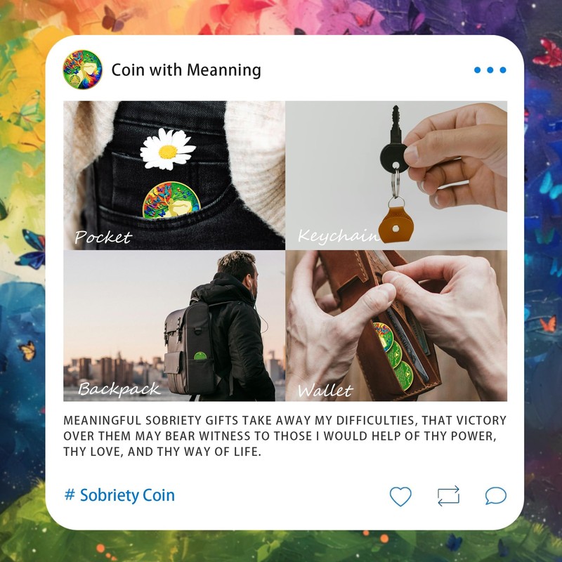 • 🎨Living Clean Journey: The two month sobriety coin, meticulously crafted with unique 3D artistry, makes for an ideal token to celebrate the successful journey to sobriety over the past 2 month. The colorful butterflies circling the tree of life on the AA coin symbolize rebirth and transformation, representing the journey from pain and adversity to reclaiming freedom and hope for those in recovery. Cute Recovery Butterflys inspire us to embrace the journey of change with positivity.