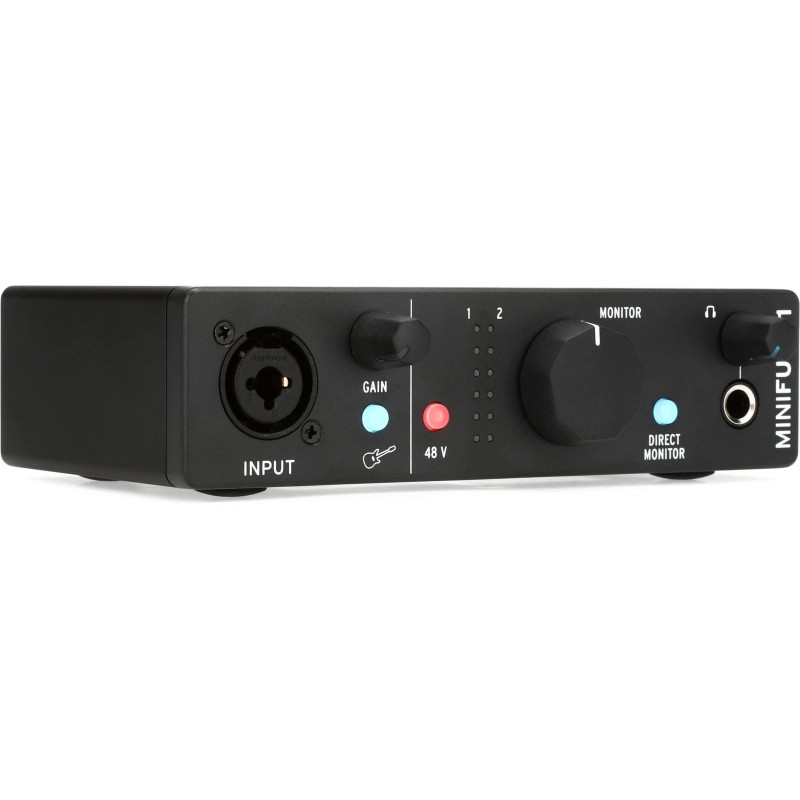 - 1 headphone output with independent volume control and direct monitor switch