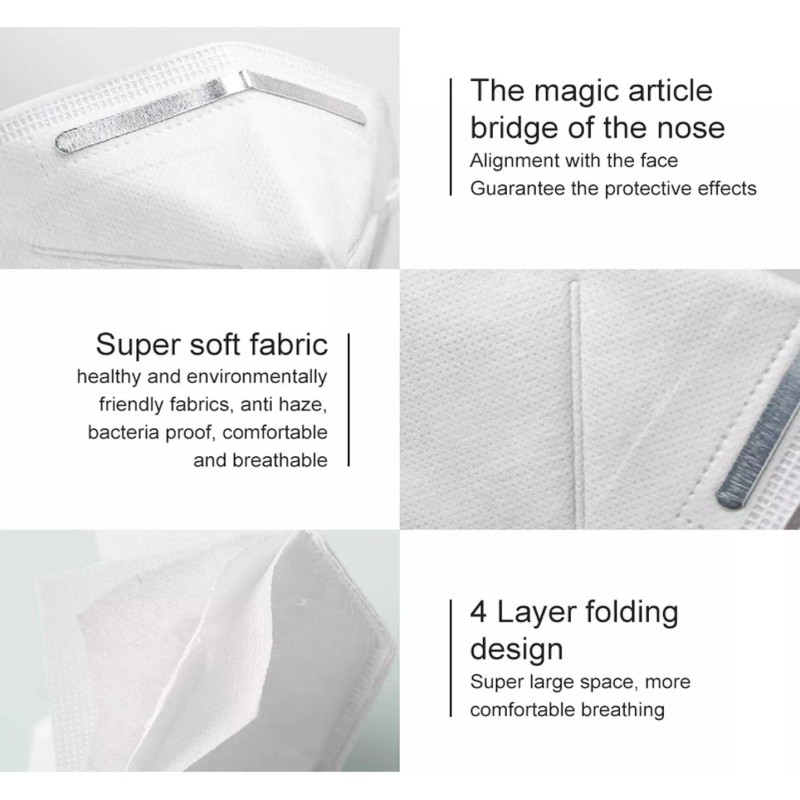 Arun KN95 disposable face-masks made of two layers of 28g non-woven skin-friendly fabric protects from 95% of contaminants. KN95 allows for dust face protection, fits multiples face size, and allows for breathing smooth respiration PPE.