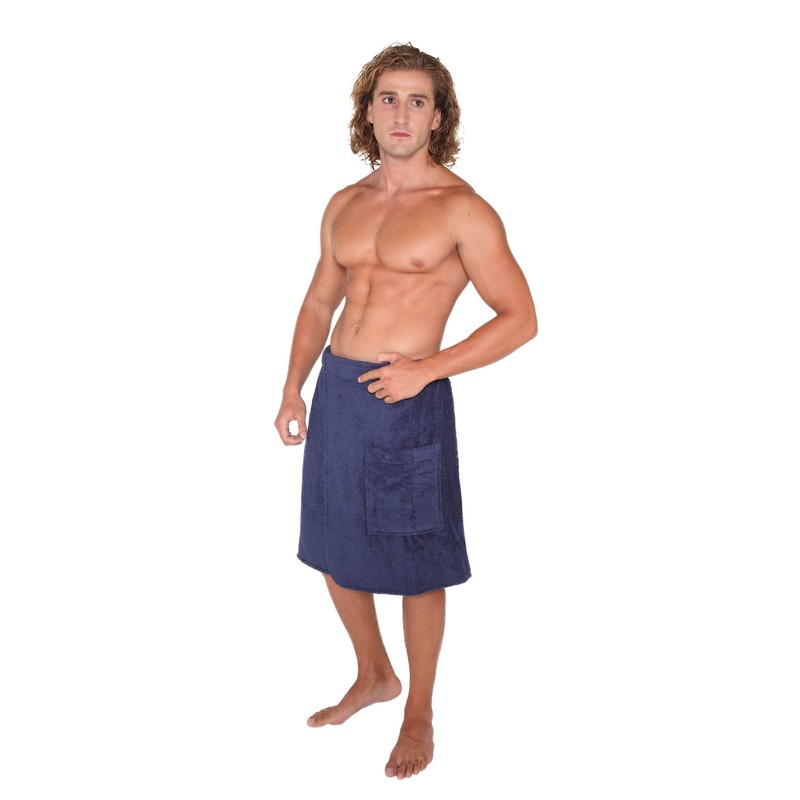 Arus Sauna Kilt for Men 100% Organic Cotton Terry Knee Length Elasticated Velcro Sauna Towel Bath Towel Size P/S Navy