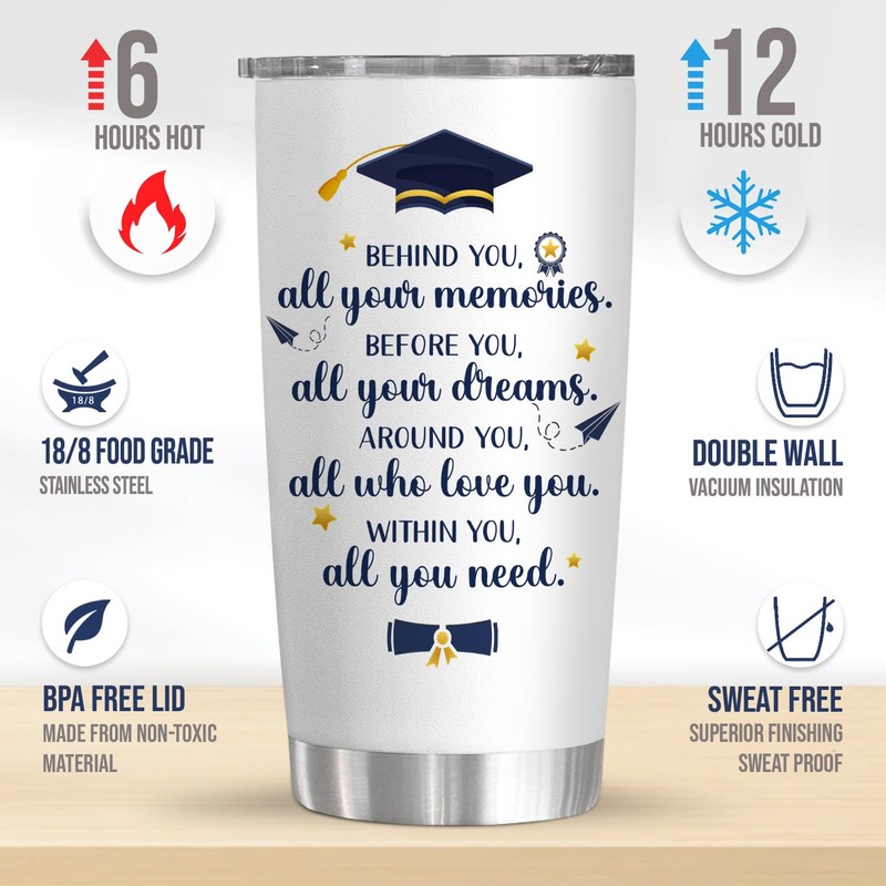 - 2024 GRADUATION GIFTS - Celebrate the milestone achievement of graduation with our delightful graduation gifts. Our charming tumblers make the ideal college, high school graduation gifts for him, her, inspirational, motivational gifts for son, daughter gifts from mom, dad, or even grandchildren gifts to brighten up their day with a touch of celebration!