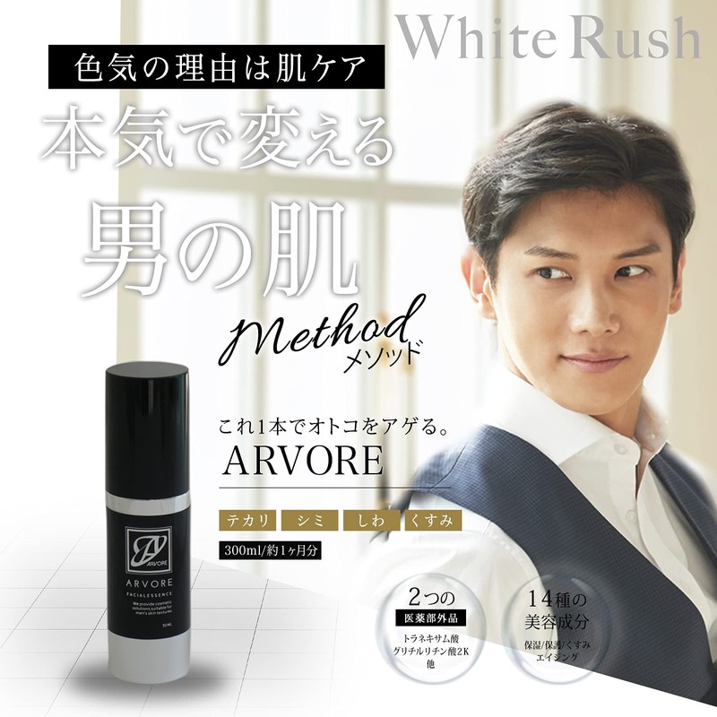 ARVORE Men's Beauty Serum, White Rash, 1.0 fl oz (30 ml), Whitening, Tranexamic Acid, Prevents Dullness