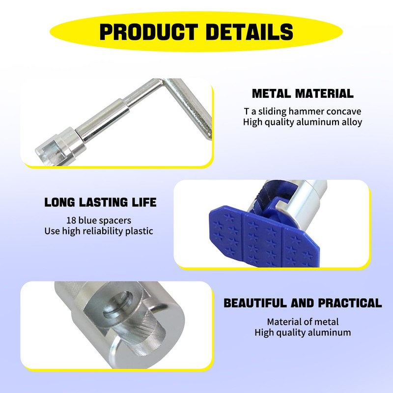 - Paintless Repair: Crafted from tempered high-carbon and standard stainless steel, the T-bar dent puller integrates high-quality rubber padding in areas of body contact, safeguarding the original paint from damage.