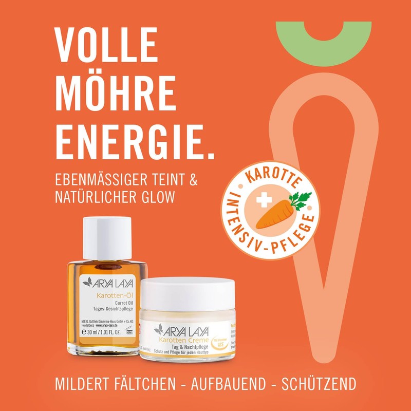 Arya Laya ARYA LAYA Carrot Cream Day & Night Care, 50ml - Face Cream for Dehydrated, Dry, and Normal Skin, Moisturizing Cream for a Fresh and Lightly Tanned Complexion
