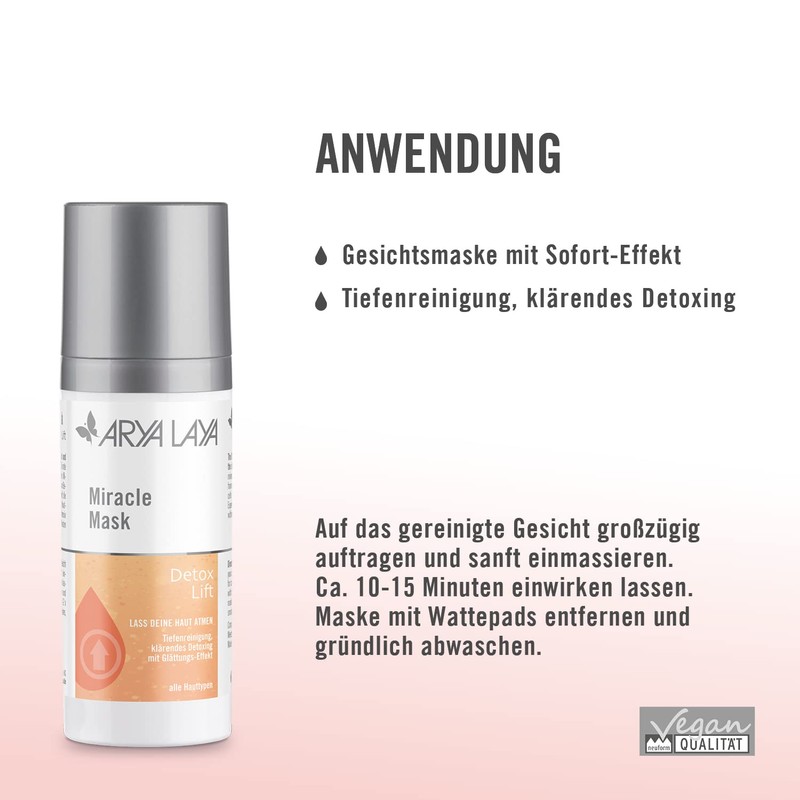 ARYA LAYA Miracle Mask Detox Lift, 30 ml – Gesichtsmaske zur Tiefenreinigung, klärendes Detoxing mit Glättungs-Effekt, strafft, erfrischt belebt sofort sichtbar