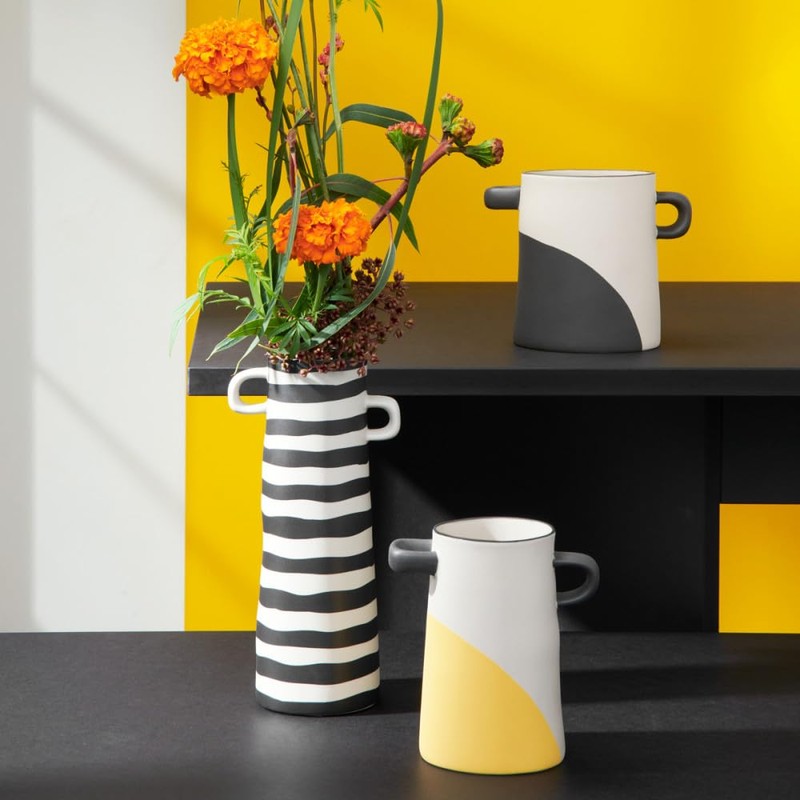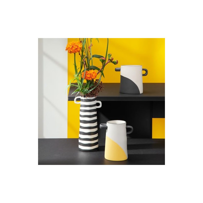 The vases of the striped series are characterised by their unusual design with cut-out handles. They perfectly highlight your flower arrangements and attract the eye without adding flowers or branches. In gift box, dishwasher-safe, microwave-safe, diameter: 13.5 cm, height: 15.5 cm, material: stoneware, colour: matte pattern, series: striped, item number of manufacturer: 84801130, contents: 1 ASA Selection Rayu vase, table vase, decorative vase, flower vase, grey. Ãs, wet black, height 15.5 cm, 84801130
