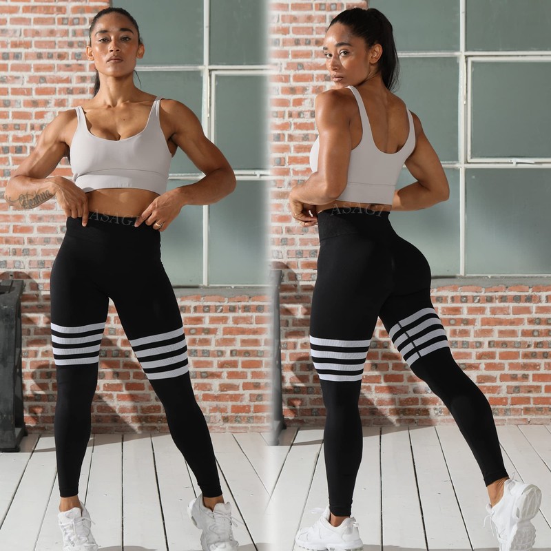 - STRIPED LEGGINGS FOR WOMEN -FOUR STRIPES: Striped scrunch butt leggings for women are made from 92% nylon and 8% spandex for a soft feel like a second skin. Featuring seamless technology, butt lifting leggings have no front seam to avoid camel toe. Four horizontal white stripes leggings are a new hot trend, visually shape the golden ratio body, you will be fascinated by these workout leggings for women!