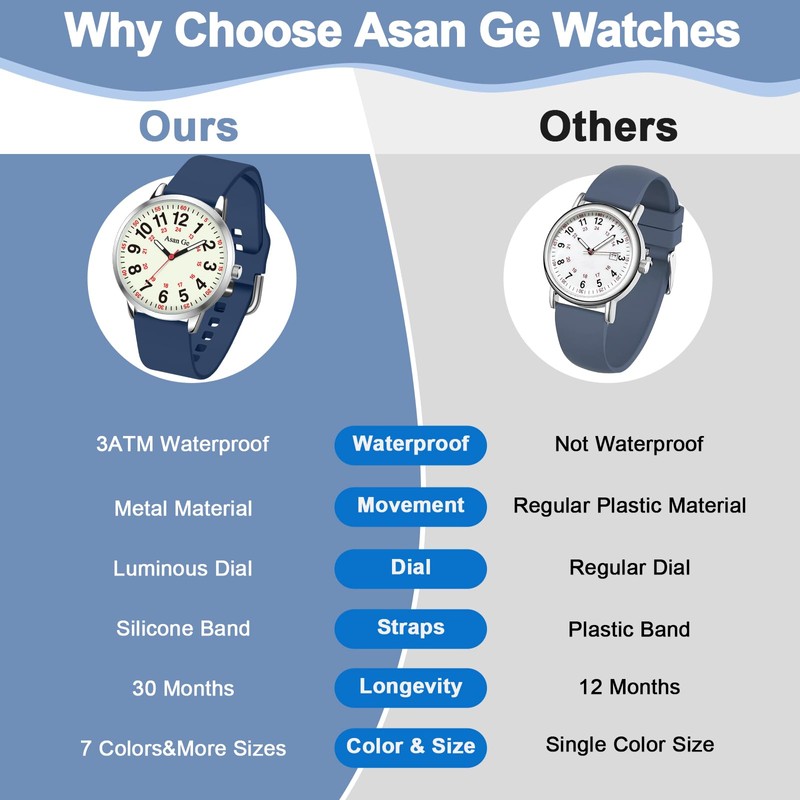 Asan Ge 40MM 3ATM Waterproof Wear Resistant Anti-Scratch Analog Nurse Watch 12/24 Hour Luminouse with Second Hand Military Time Big Face Easy to Read,Soft Breathable Easy to Clean Gift for Women