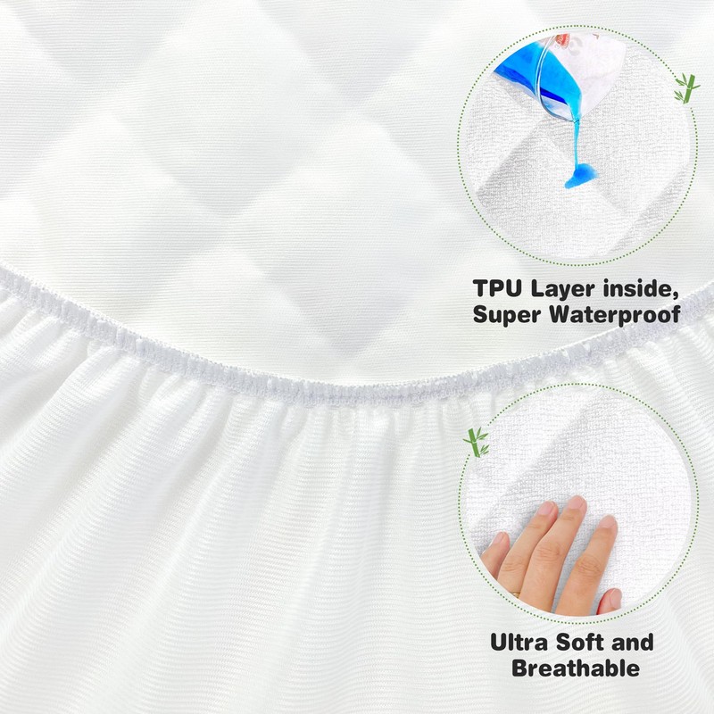 - Waterproof and Moisture Wicking: This cool fabric effectively prevents mattress accident spills or frequent bedwetting in the night, which ensures the little a cozy sleeping temperature and sound dream