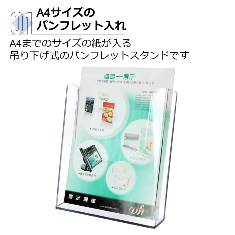 - [A4 Size Brochure Holder] Hanging brochure stand that can hold paper up to A4 size. There is a hole so you can install it by using a cable tie