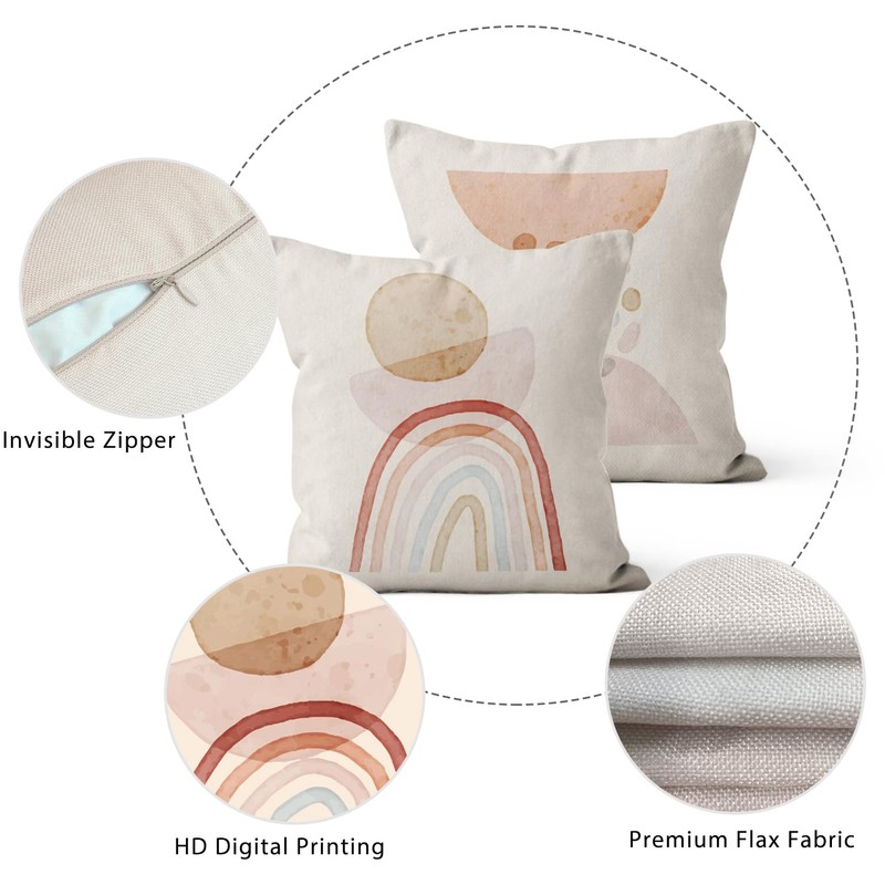 - High-quality materials: the boho style cushion cover is made of 100% high-quality polyester fibre, which is soft, comfortable and breathable, has no peculiar smell and is child and pet friendly. The faux linen surface is not easy to wrinkle, and has a thick texture, which is durable and not easy to fade or fray. TIPS The graphics are printed only on the front side, there is no printing on the back and no padding core or padding.