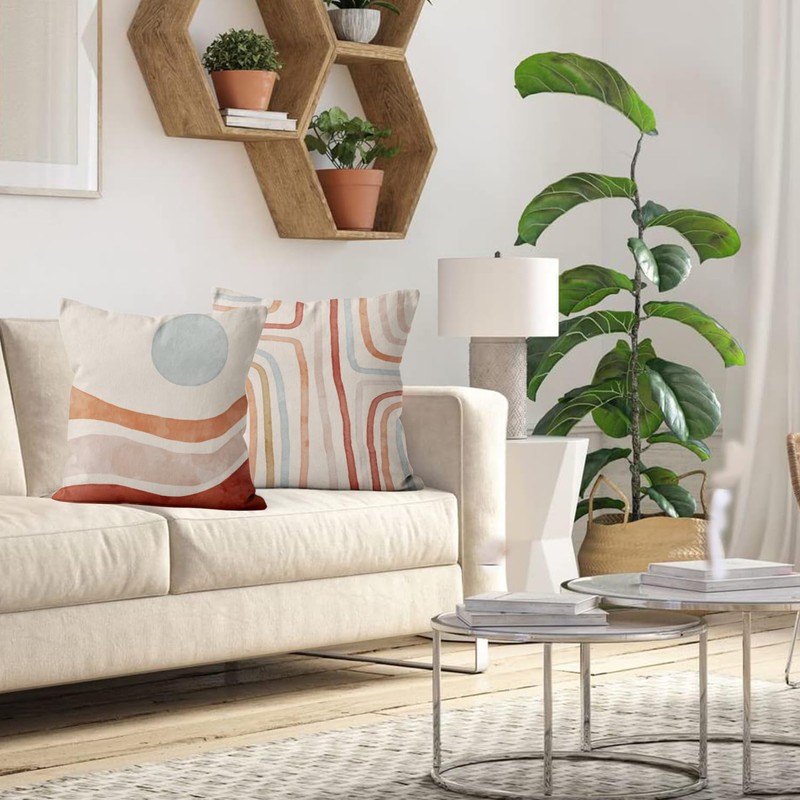 ASDCXZ Boho Cushion Cover 40 x 40 cm Set of 4 Modern Abstract Art Boho Sun Line Beige Decorative Cushion Covers Washable Polyester Flax Textile Cushion Cover