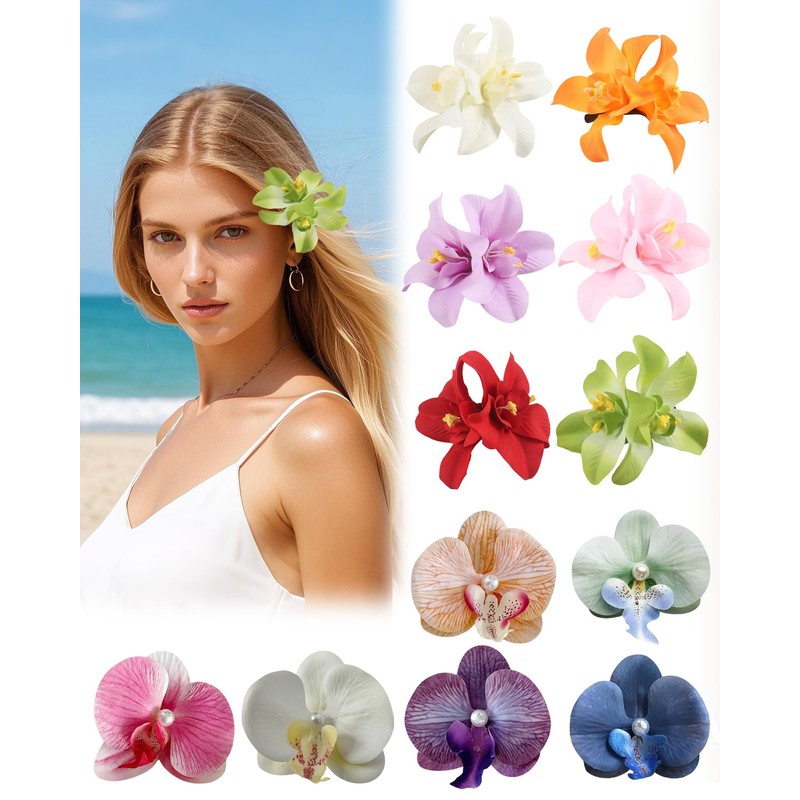 - No-Brainer Bohemian Kit: 6 vibrant two-flower clips + 6 lovely orchid clips(12 total!)— skip the “what matches?” stress. Each two-flower clip showcases paired blooms, adding a sweet, balanced flair to your look. Perfect for beach days, music festivals, or adding a “tropical escape” vibe to your grocery run. Just clip & go — instant free-spirited energy, no planning needed.
