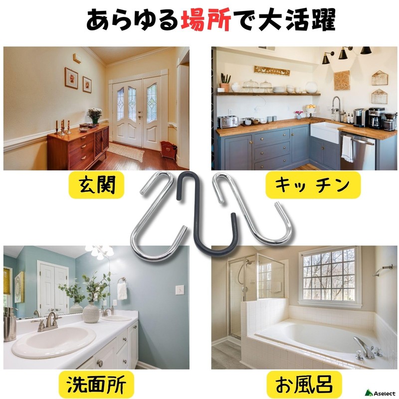 Aselect S-Shaped Hook, Small S-Shaped Hook, Does Not Fall Off, S Shaped Hooks, Small S Shaped Hooks, Silver x 20 Pieces