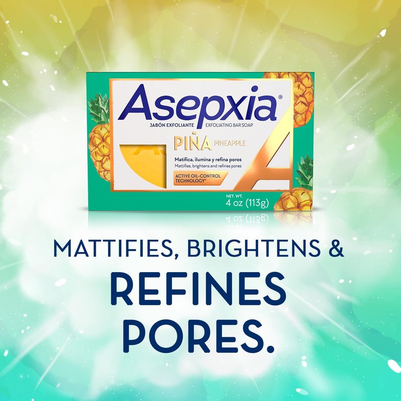 Asepxia Bar Soap, Non-Abrasive Exfoliating Facial Cleanser with Natural Pineapple Enzyme & Agave Extract, Pore Purifying & Brightening Face Wash for Oily Skin, 4 oz. - 5 Pack
