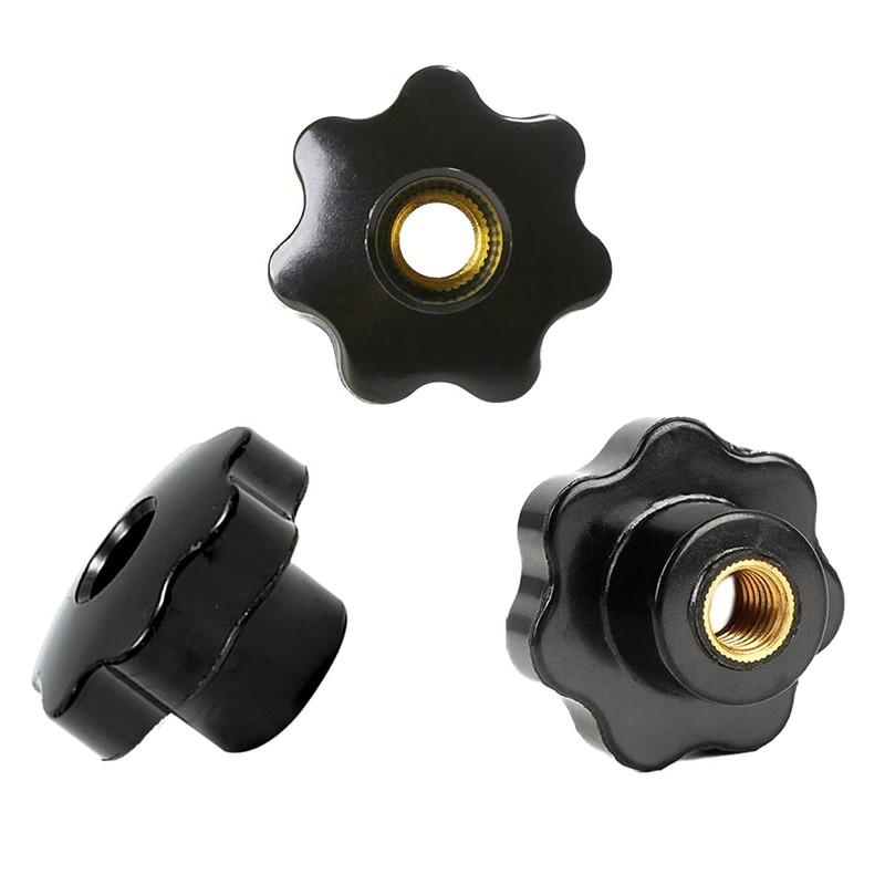 • Star knobs --- The threaded clamp knob is black and is made of plastic. The button star shape button handle ideal for machine tools. Star head diameter: 32/40/50 mm.