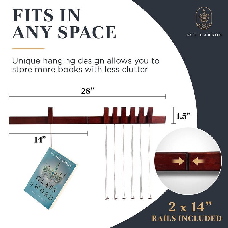 Ash Harbor Ash Harbor Floating Wall Bookshelf - Wall Mounted Book Organizer with Included Bookmarks - Hardwood Hanging Bookshelf for Bedroom, Living Room, or Kitchen - A Thoughtful Gift for Book Lovers (Dark)