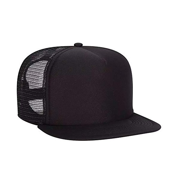 Ashen Fane Polyester Flat Bill Foam Front 5 Panel High Crown Mesh Back Trucker Snapback Hat, Black
