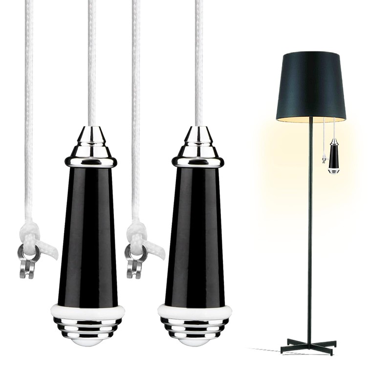 Simplify your daily routine and add a touch of elegance to your space with the 2 pcs set black bathroom light pull cord handle with 150cm light pull cord extension.