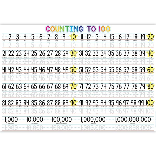 Ashley Placemat Studio Smart Poly 1-100 Counting Learning Placemat, 13-inch x 19-inch, Single Sided, 10/Pack (ASH95705)