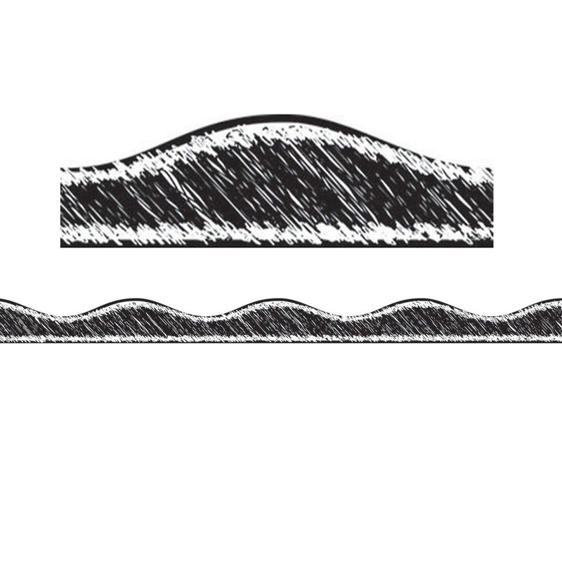ASHLEY PRODUCTIONS Scribble Chalk Magnetic Border Black Scribble, 1" x 12'