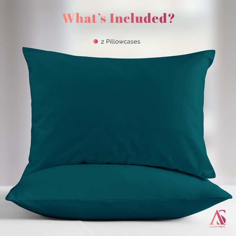 Ashton Sheets Luxury Egyptian Cotton Standard/Queen Pillow Cases Set of 2-1000 Thread Count Standard/Queen Pillowcases, Soft, Sateen Weave Cooling Pillowcase for Standard/Queen Pillows - Teal