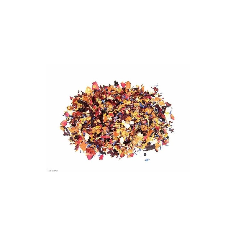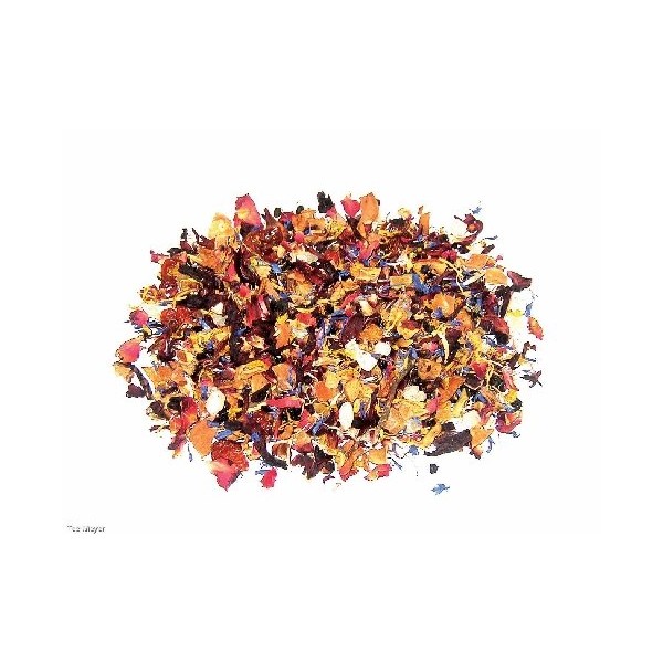 Ingredients: apple, hibiscus, rosehip, elderberries, pineapple pieces (pineapple, sugar), papaya pieces (papaya, sugar), aroma, cornflower blossoms, sunflower flowers.