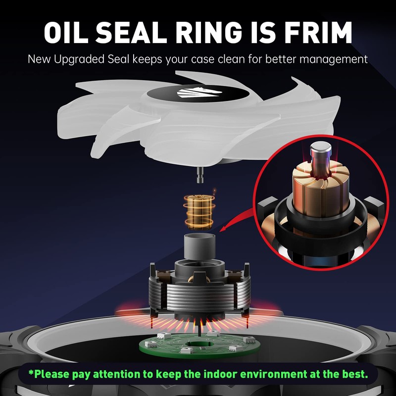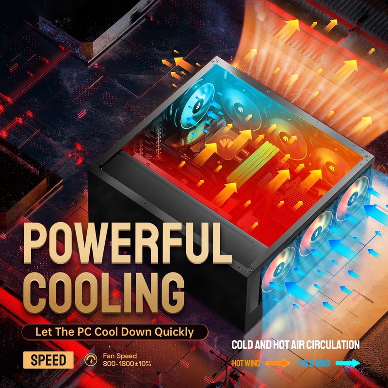 - 【Especificación】Modelo: FS-9002PRO. Cantidad: 5 piezas. Tamaño: 120*120*25MM. Velocidad: 800-1800±10%RPM/Min. Ruido: 22,65dB(A). Flujo de aire: 57CFM±10%. Presión de aire: 1,2mmH2O. Tipo de rodamiento: FDB. Vida útil: Más de 40.000 horas. Admite refrigeración líquida para CPU de 240/360 mm de altura.