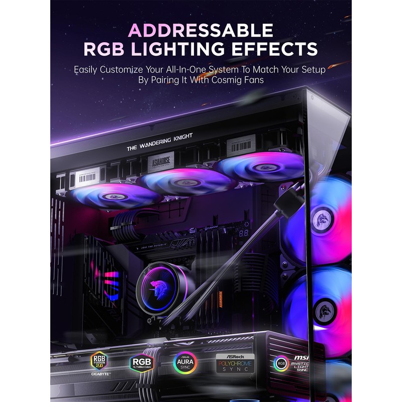 AsiaHorse WK-A360 ARGB All-in-One AIO CPU Liquid Cooler, Wandering Knight 360mm Water Cooling System with Dual High-Performance Pump and 3×120mm PWM Fans, Compatible with Intel & AMD CPUs (White)