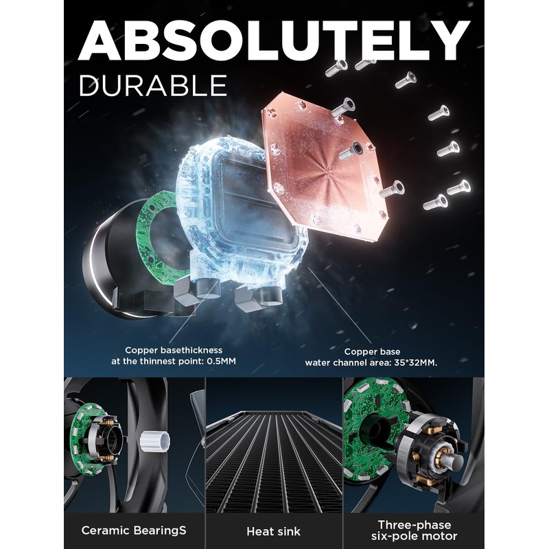 - Powerful Cooling Solution: This aio cpu cooler features a 360mm high-density aluminum fin design that maximizes airflow and enhances heat exchange efficiency, keeping the CPU cool even under heavy loads. Furthermore, premium and durable tubing ensures unhindered coolant flow, preventing performance degradation and leakage risks due to aging