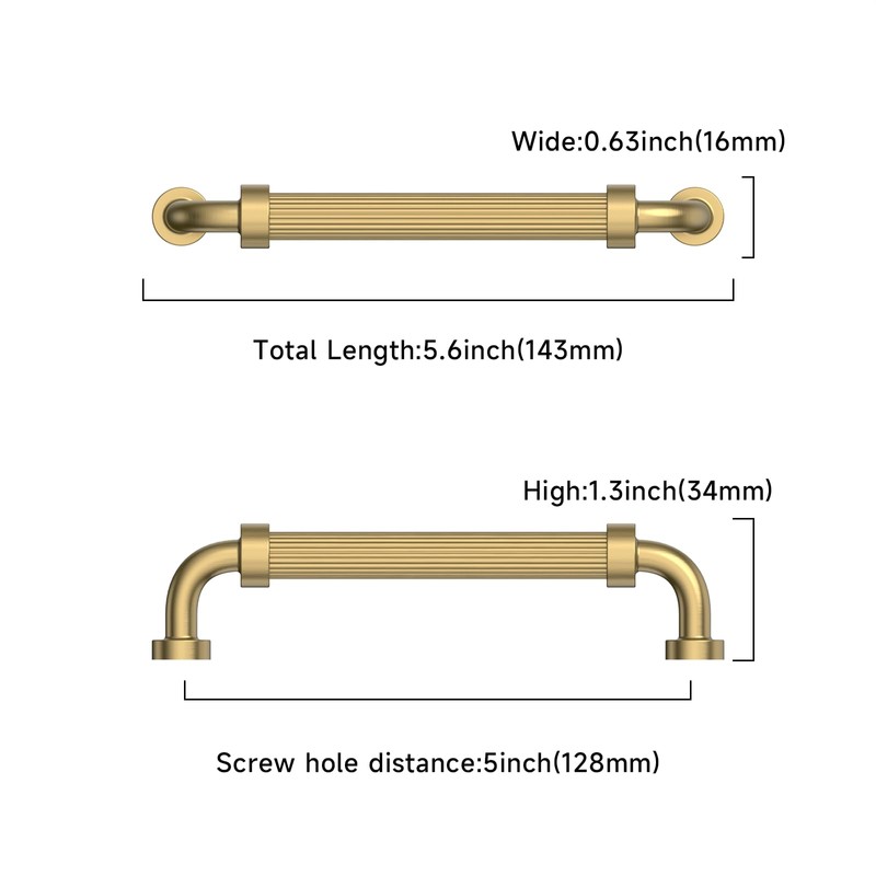 • Measurement: Hole Centers(CC):5 inch(128MM); Overall Length:5.6 inch(143MM); Width:0.63 inch(16MM); Projection:1.3 inch(34MM); Please check the Size of handles you require carefully before purchasing.