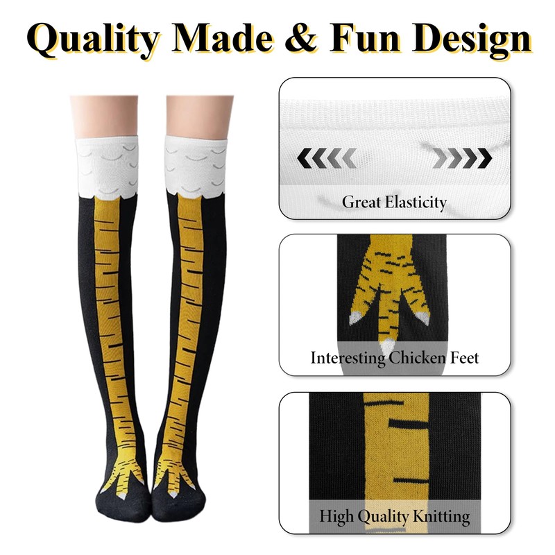 - Flexible Fit: The funny chicken over the knee socks are 27.17in total length, 19.69in leg section length, 7.48in foot length, fit leg circumference 10.2-16.1. Suitable for most adults and children wear. This funny socks, realistic animal paw design easily matches any outfit and delivers style conversions. (Tips: Please check the dimensions before purchasing!)