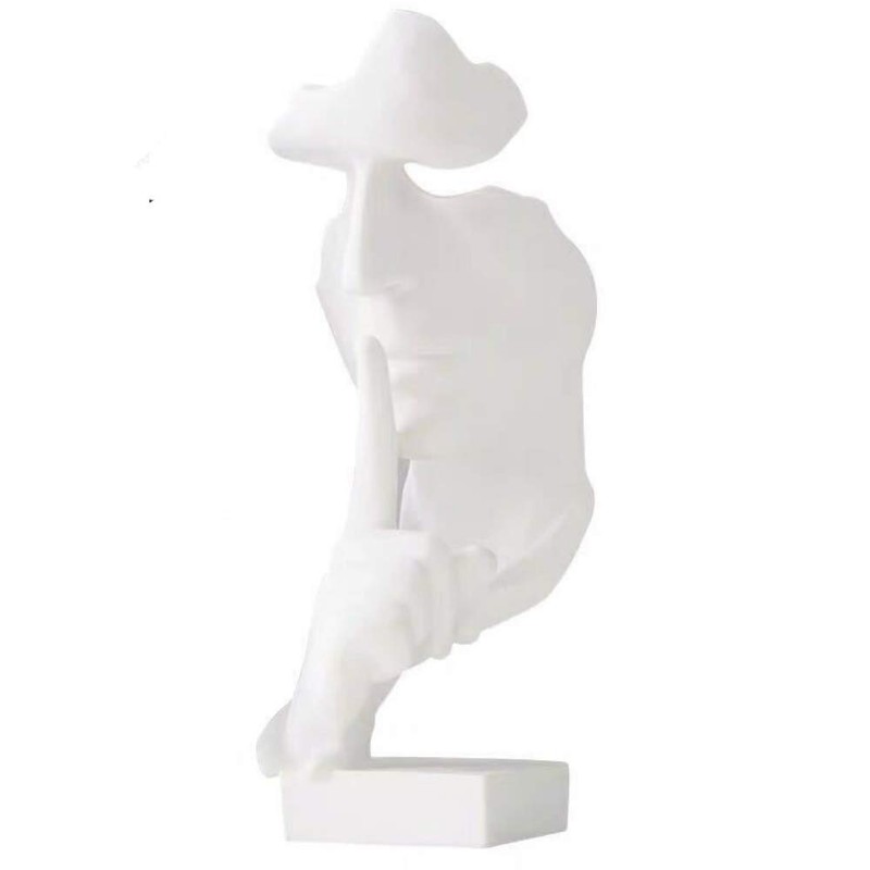 Asng Creative Abstract Men Figurine Sculptures, Keep Silence Statue, Thinker Statue, Office Home Decor (White)