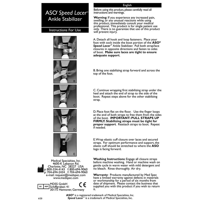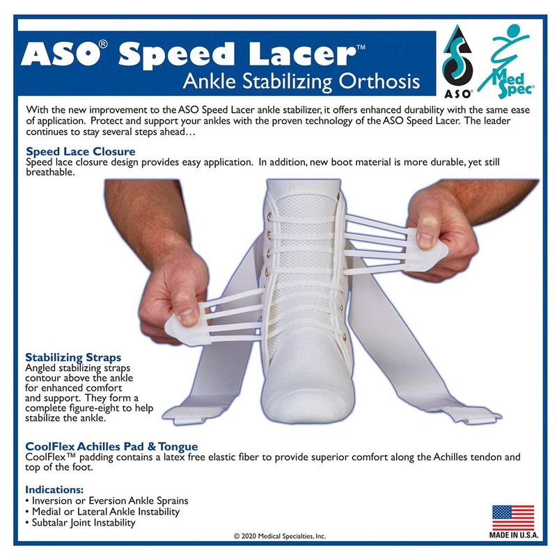 ASO Speed Lacer Ankle Stabilizer, White, Large