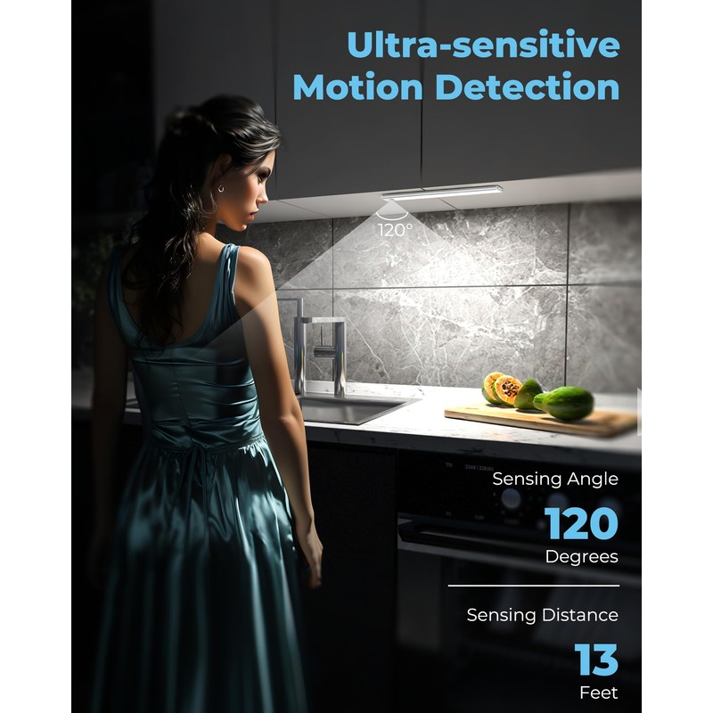 - LIGHT UP EVERYWHERE - Our under cabinet lighting for the kitchen has passed strict quality control tests and is safe to use in many indoor locations.This motion sensor cabinet light is ideal for the bedroom, baby room, closet, closets, cabinet, corridor, workshop, basement, garage, stairwell,garage entrances pantry and other dark places.