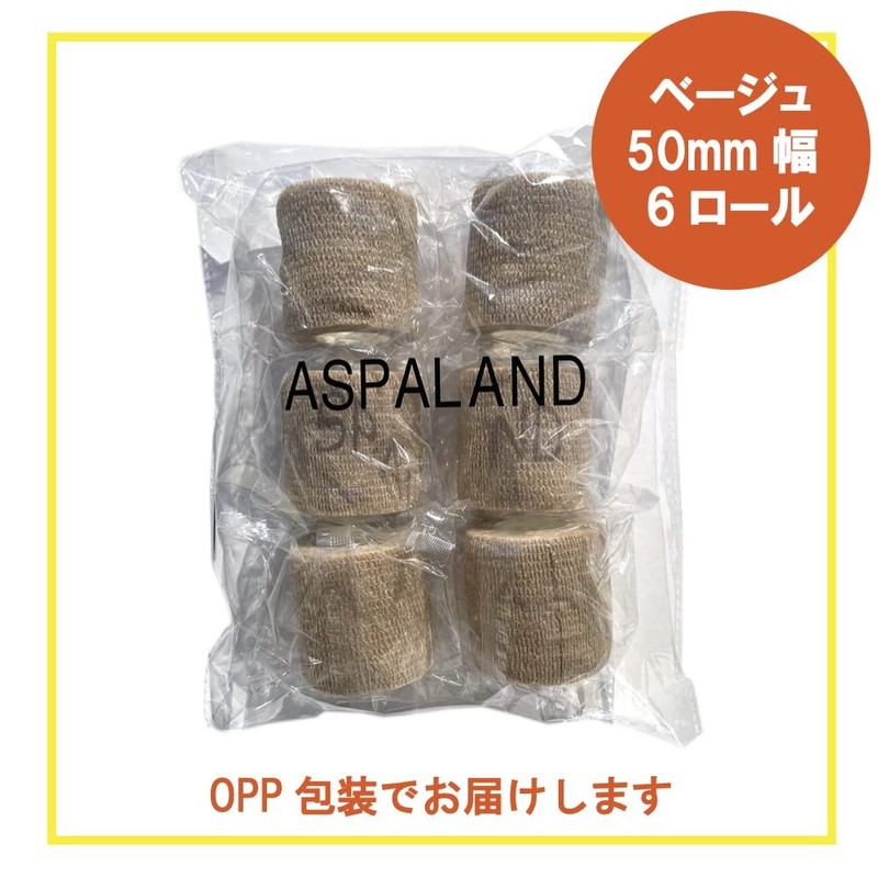 ASPALAND 自着性テープ 包帯 テーピング エラスチック バンデージ 自己粘着 伸縮包帯 弾性 (ベージュ6巻入, 5cm*4.5m)