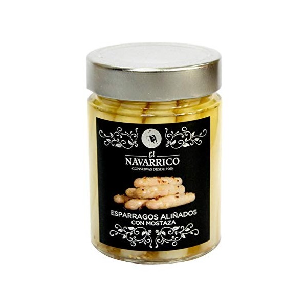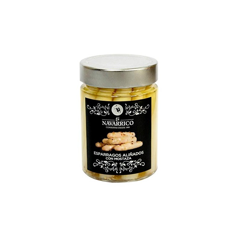 - White asparagus seasoned with mustard.